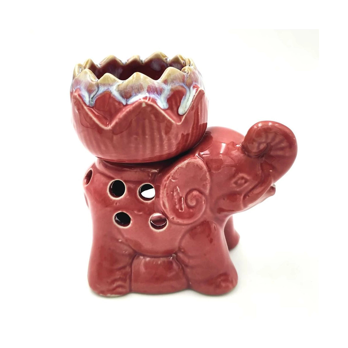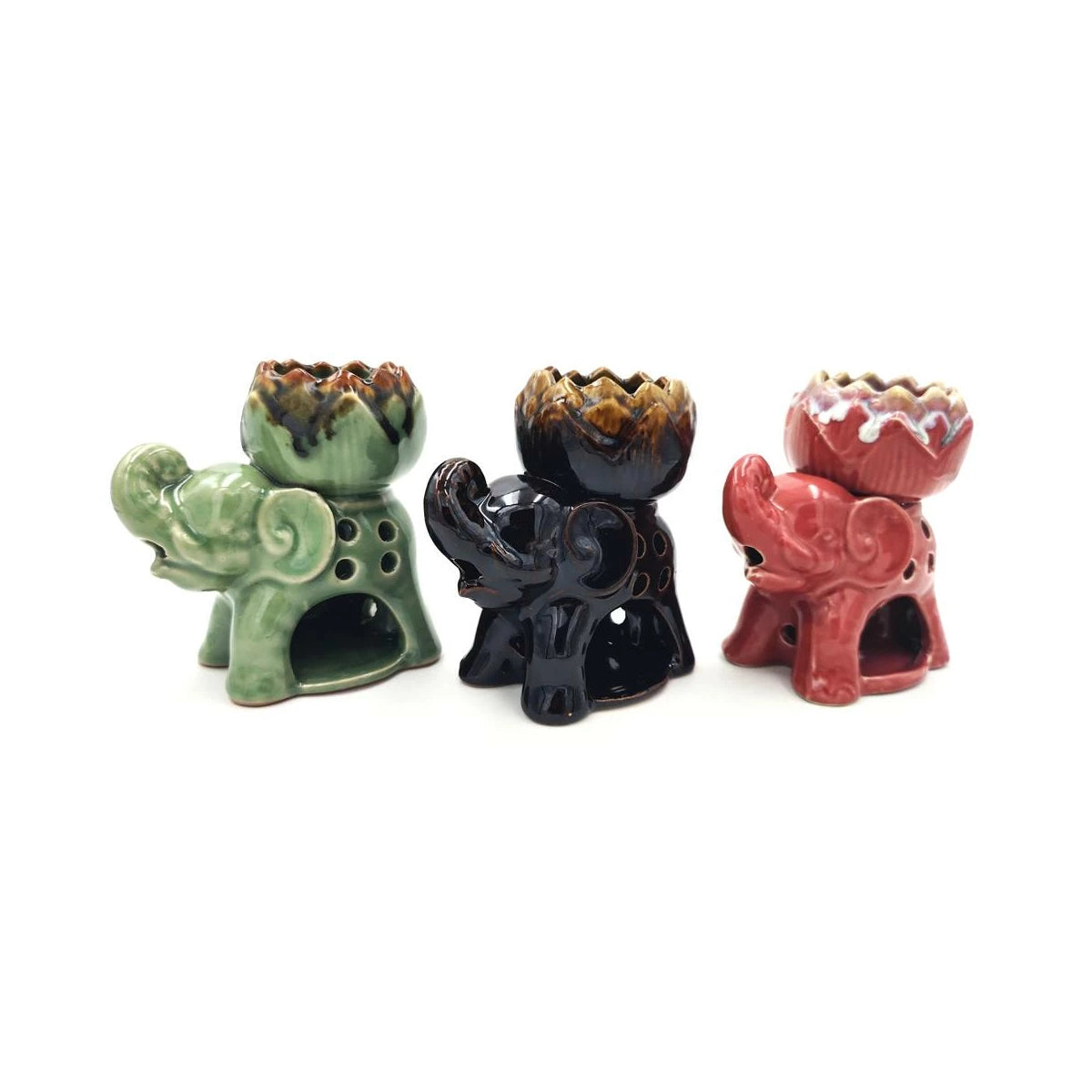 Keramik-Öllampe „Elefant & Lotus“ – Handarbeit aus Thailand