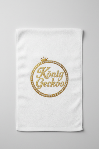 Mach dein Badezimmer zum Highlight! Das König Geckoo Handtuch vereint edles Design mit praktischer Alltagstauglichkeit. Das goldene Logo ist ein echter Hingucker und macht jedes Bad oder Gäste-WC zu etwas Besonderem.
